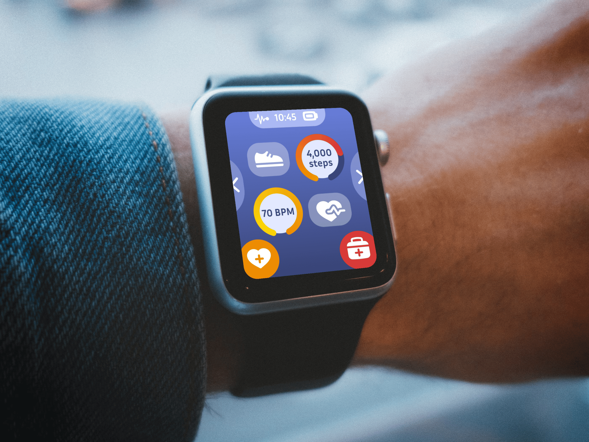 By combining the modern watch user interface and considering an elder target audience, this design mindfully provides daily fitness and health needs.